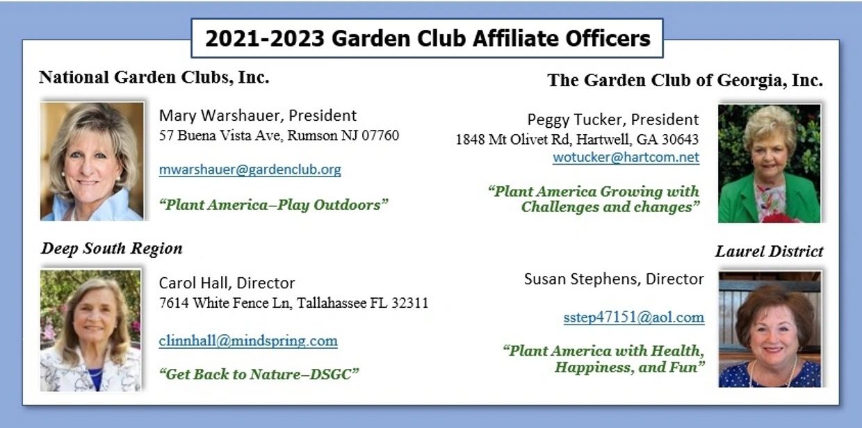 Meet NGCs 2021-2023 Officers and Directors. Currently there are 196 member clubs in 40 states and. Our New President of The Garden Club of Georgia Inc.